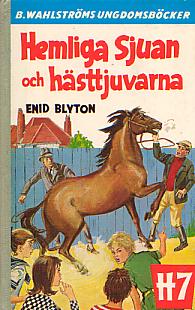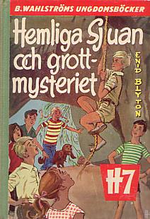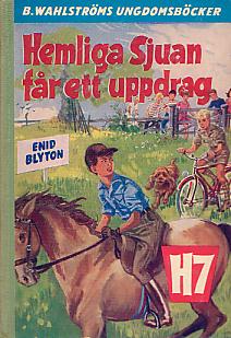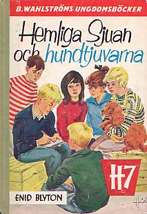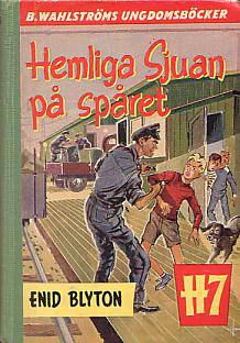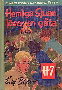 Hemliga sjuan handlar om sju engelska barn och deras hund som har bildat en hemlig klubb. De har en tendens att alltid hamna i spännande äventyr. Historierna är ganska kluriga med ledtrådar som gör att barnen kanske kan lösa mysteriet före Hemliga sjuan. Böckerna har också en charmig engelsk lantlig atmosfär. Böckerna torde passa bäst för lite yngre läshungriga barn. Av den engelska originalseriens 15 böcker har samtliga översatts till svenska. Mellan åren 1955 och 1964 publicerades de på B. Wahlströms Ungdomsböcker i serien med de gröna ryggarna. Utgivningen följde i stort den engelska. Undantaget är att man skiftade ordningen på Hemliga sjuan och fågelholksmysteriet och Hemliga sjuan och hundtjuvarna. De svenska omslagen är gjorda av Gunnar Olofsson och Heidi Lindgren. De påminner ibland om de engelska förlagorna, men framstår ibland som relativt självständiga. Böckerna innehåller som regel drygt 10 illustrationer, vilket inte tillhörde vanligheterna för B. Wahlströmsböckerna. Under slutet av 1970- och början av 1980-talet publicerade Wahlströms alla böckerna igen i Poppis-serien. Denna gång följde man dock inte den ursprungliga utgivarordningen. Böckerna blev också rejält förkortade och de interna illustrationerna försvann. Omslagen till dessa gjordes av Wenche Holstad. |